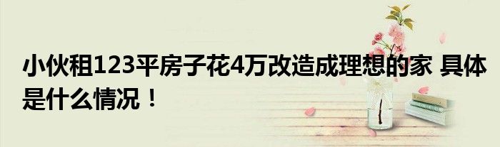 【小伙租123平房子花4万改造成理想的家】!!!今天受到全网的关注度非常高,那么具体的是什么情况呢,下面大家可以一起来看看具体都是怎么回事吧!