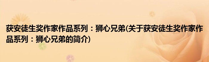 本文关于获安徒生奖作家作品系列:狮心兄弟的简介就讲解完毕,希望对大家有所帮助。
