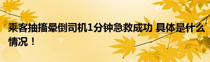 【乘客抽搐晕倒司机1分钟急救成功】!!!今天受到全网的关注度非常高,那么具体的是什么情况呢,下面大家可以一起来看看具体都是怎么回事吧!