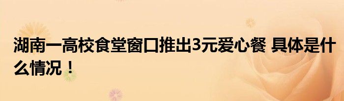【湖南一高校食堂窗口推出3元爱心餐】!!!今天受到全网的关注度非常高,那么具体的是什么情况呢,下面大家可以一起来看看具体都是怎么回事吧!