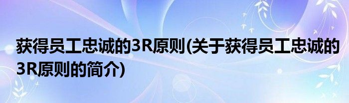 获得员工忠诚的3R原则(关于获得员工忠诚的3R原则的简介)