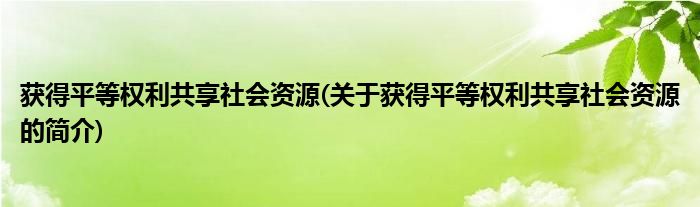 获得平等权利共享社会资源(关于获得平等权利共享社会资源的简介)