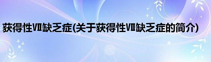 获得性Ⅶ缺乏症(关于获得性Ⅶ缺乏症的简介)