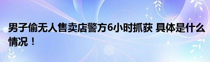 【男子偷无人售卖店警方6小时抓获】!!!今天受到全网的关注度非常高,那么具体的是什么情况呢,下面大家可以一起来看看具体都是怎么回事吧!