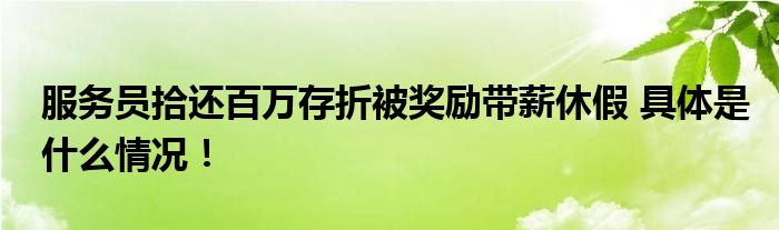 服务员拾还百万存折被奖励带薪休假 具体是什么情况!