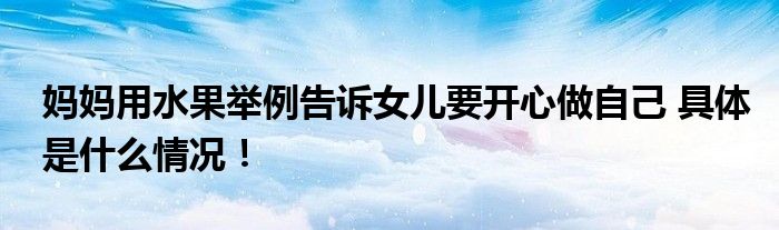 【妈妈用水果举例告诉女儿要开心做自己】!!!今天受到全网的关注度非常高,那么具体的是什么情况呢,下面大家可以一起来看看具体都是怎么回事吧!