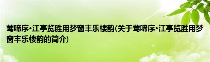 莺啼序·江亭览胜用梦窗丰乐楼韵(关于莺啼序·江亭览胜用梦窗丰乐楼韵的简介)