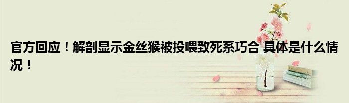 【官方回应!解剖显示金丝猴被投喂致死系巧合】!!!今天受到全网的关注度非常高,那么具体的是什么情况呢,下面大家可以一起来看看具体都是怎么回事吧!