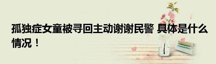 孤独症女童被寻回主动谢谢民警 具体是什么情况!