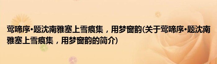本文关于莺啼序·题沈南雅塞上雪痕集,用梦窗韵的简介就讲解完毕,希望对大家有所帮助。