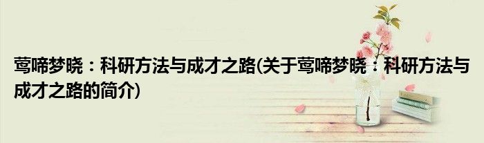 本文关于莺啼梦晓:科研方法与成才之路的简介就讲解完毕,希望对大家有所帮助。