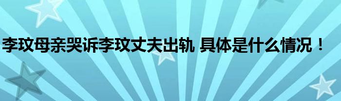 【李玟母亲哭诉李玟丈夫出轨】!!!今天受到全网的关注度非常高,那么具体的是什么情况呢,下面大家可以一起来看看具体都是怎么回事吧!
