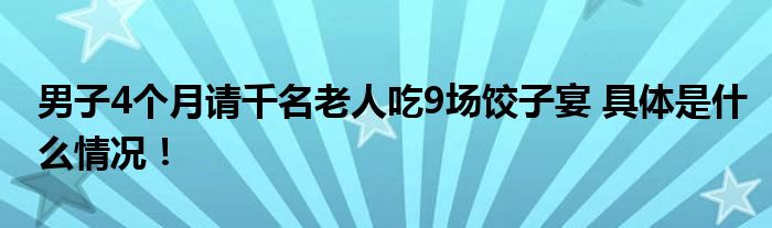 【男子4个月请千名老人吃9场饺子宴】!!!今天受到全网的关注度非常高,那么具体的是什么情况呢,下面大家可以一起来看看具体都是怎么回事吧!