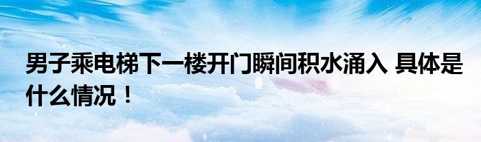 【男子乘电梯下一楼开门瞬间积水涌入】!!!今天受到全网的关注度非常高,那么具体的是什么情况呢,下面大家可以一起来看看具体都是怎么回事吧!