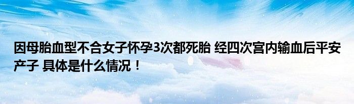 因母胎血型不合女子怀孕3次都死胎 经四次宫内输血后平安产子 具体是什么情况!
