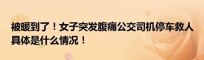 被暖到了!女子突发腹痛公交司机停车救人 具体是什么情况!