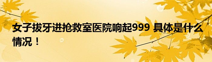 女子拔牙进抢救室医院响起999 具体是什么情况!