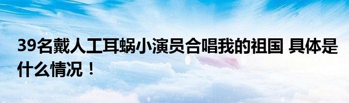 【39名戴人工耳蜗小演员合唱我的祖国】!!!今天受到全网的关注度非常高,那么具体的是什么情况呢,下面大家可以一起来看看具体都是怎么回事吧!