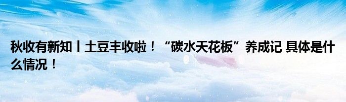 秋收有新知丨土豆丰收啦!“碳水天花板”养成记 具体是什么情况!
