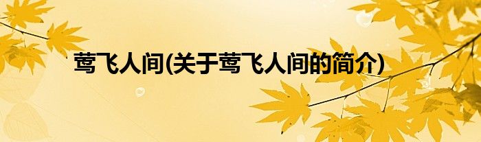大家好,莺飞人间,关于莺飞人间的简介很多人还不知道,现在让我们一起来看看吧!