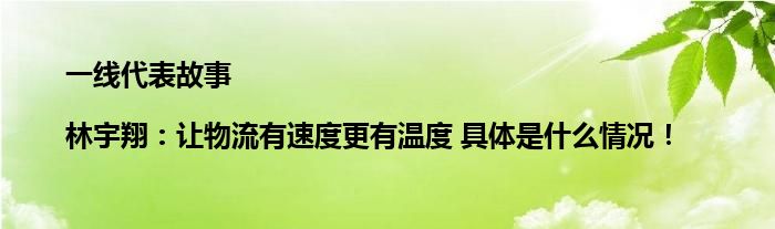 【一线代表故事|林宇翔:让物流有速度更有温度】!!!今天受到全网的关注度非常高,那么具体的是什么情况呢,下面大家可以一起来看看具体都是怎么回事吧!