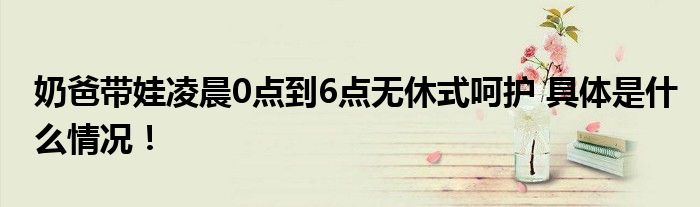 奶爸带娃凌晨0点到6点无休式呵护 具体是什么情况!