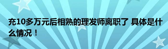 充10多万元后相熟的理发师离职了 具体是什么情况!