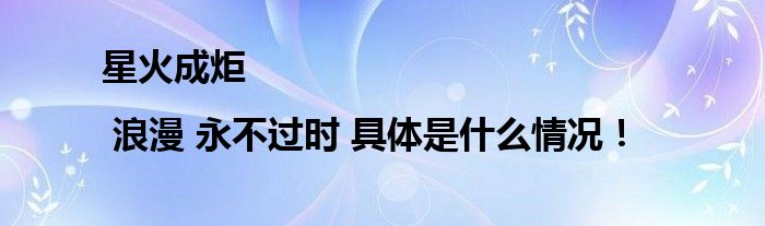 星火成炬 | 浪漫 永不过时 具体是什么情况!