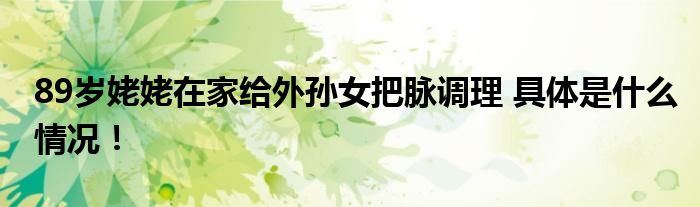 【89岁姥姥在家给外孙女把脉调理】!!!今天受到全网的关注度非常高,那么具体的是什么情况呢,下面大家可以一起来看看具体都是怎么回事吧!