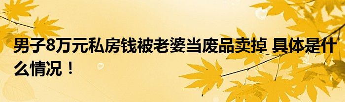男子8万元私房钱被老婆当废品卖掉 具体是什么情况!