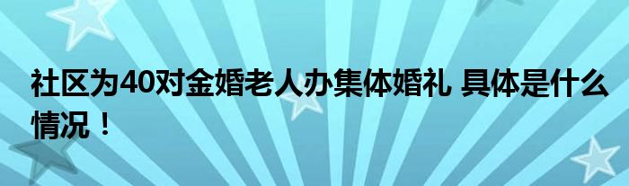 【社区为40对金婚老人办集体婚礼】!!!今天受到全网的关注度非常高,那么具体的是什么情况呢,下面大家可以一起来看看具体都是怎么回事吧!