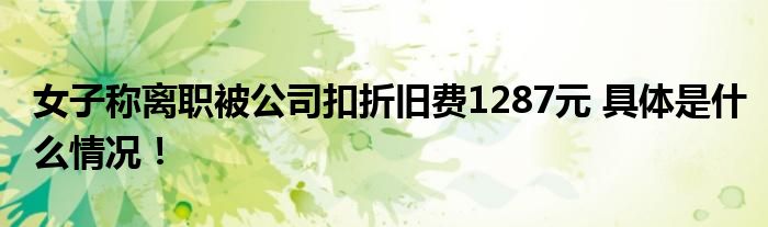 女子称离职被公司扣折旧费1287元 具体是什么情况!
