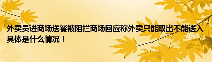 【外卖员进商场送餐被阻拦,商场回应称外卖只能取出不能送入】!!!今天受到全网的关注度非常高,那么具体的是什么情况呢,下面大家可以一起来看看具体都是怎么回事吧!