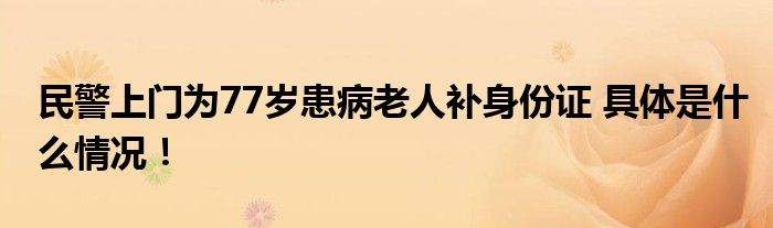 【民警上门为77岁患病老人补身份证】!!!今天受到全网的关注度非常高,那么具体的是什么情况呢,下面大家可以一起来看看具体都是怎么回事吧!