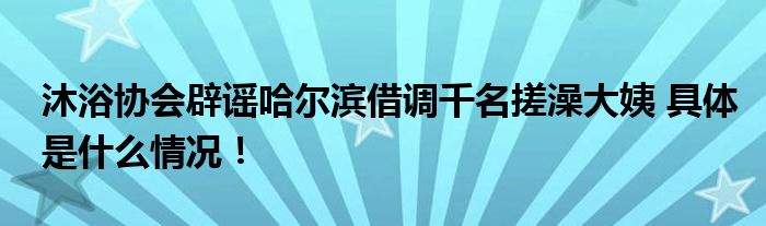 【沐浴协会辟谣哈尔滨借调千名搓澡大姨】!!!今天受到全网的关注度非常高,那么具体的是什么情况呢,下面大家可以一起来看看具体都是怎么回事吧!