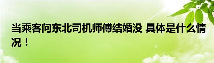 【当乘客问东北司机师傅结婚没】!!!今天受到全网的关注度非常高,那么具体的是什么情况呢,下面大家可以一起来看看具体都是怎么回事吧!