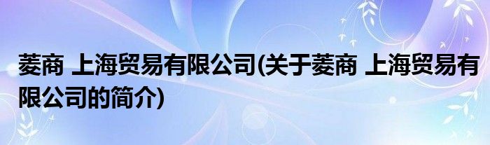 菱商 上海贸易有限公司(关于菱商 上海贸易有限公司的简介)