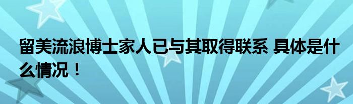 【留美流浪博士家人已与其取得联系】!!!今天受到全网的关注度非常高,那么具体的是什么情况呢,下面大家可以一起来看看具体都是怎么回事吧!