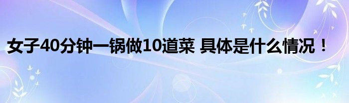【女子40分钟一锅做10道菜】!!!今天受到全网的关注度非常高,那么具体的是什么情况呢,下面大家可以一起来看看具体都是怎么回事吧!