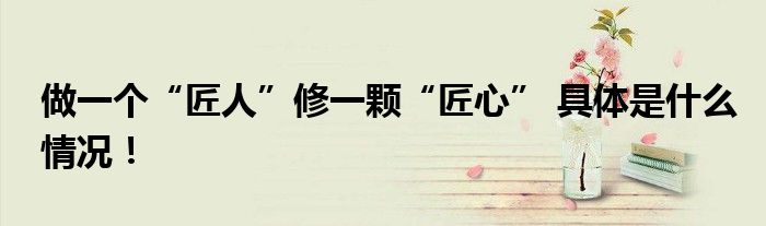 做一个“匠人”修一颗“匠心” 具体是什么情况!