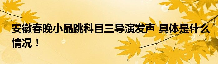 安徽春晚小品跳科目三导演发声 具体是什么情况!