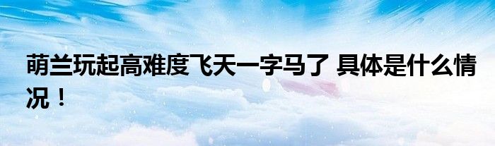 【萌兰玩起高难度飞天一字马了】!!!今天受到全网的关注度非常高,那么具体的是什么情况呢,下面大家可以一起来看看具体都是怎么回事吧!
