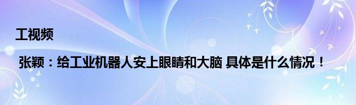 【工视频 | 张颖:给工业机器人安上眼睛和大脑】!!!今天受到全网的关注度非常高,那么具体的是什么情况呢,下面大家可以一起来看看具体都是怎么回事吧!