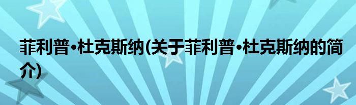 大家好,菲利普·杜克斯纳,关于菲利普·杜克斯纳的简介很多人还不知道,现在让我们一起来看看吧!