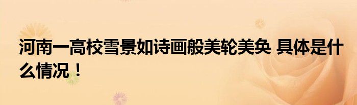 【河南一高校雪景如诗画般美轮美奂】!!!今天受到全网的关注度非常高,那么具体的是什么情况呢,下面大家可以一起来看看具体都是怎么回事吧!