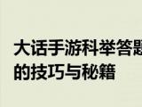 一、大话手游科举答题器简介大话手游科举答题器是一款专为大话手游玩家设计的辅助工具,旨在帮助玩家更好地参与游戏中的科举答题环节。通过 浏览全文>>