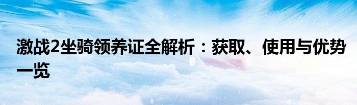 本文将全面解析《激战2》游戏中的坐骑领养证,帮助玩家了解如何获取、使用以及其所带来的优势。