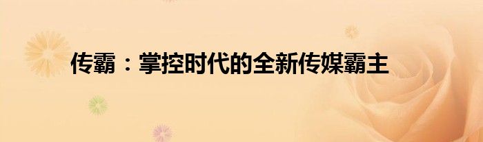 总之,传霸是掌控时代的全新传媒霸主,它将引领传媒行业走向新的高度。