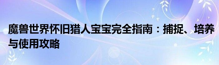 魔兽世界怀旧猎人宝宝完全指南:捕捉、培养与使用攻略