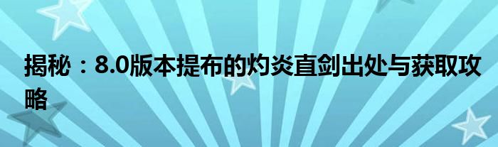 揭秘:8.0版本提布的灼炎直剑出处与获取攻略
